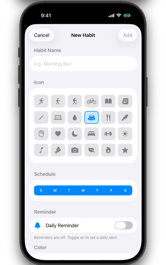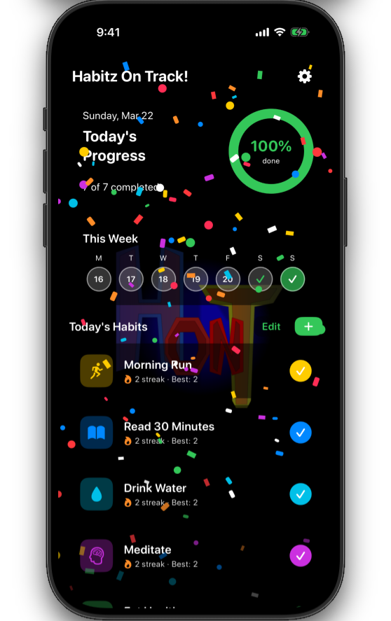 I designed Habitz On Track! to be clean, feature-rich, and easy to use. It includes deep customization, including custom habit inputs, daily notification reminders, and the ability to schedule habits for specific days of the week. It will be available for iPhones initially, with a possible Android release to follow.